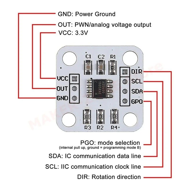 4× AS5600 Magnetischer Winkel Sensor Encoder Modul I2C PWM Analog 3.3V